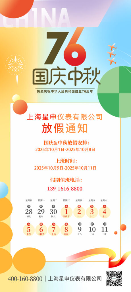 2025年,是中華人民共和國76周年華誕,也是世界反法西斯戰(zhàn)爭勝利80周年。在這雙慶疊加的歷史性時(shí)刻,上海星申儀表有限公司與國同夢(mèng),與民同歡。